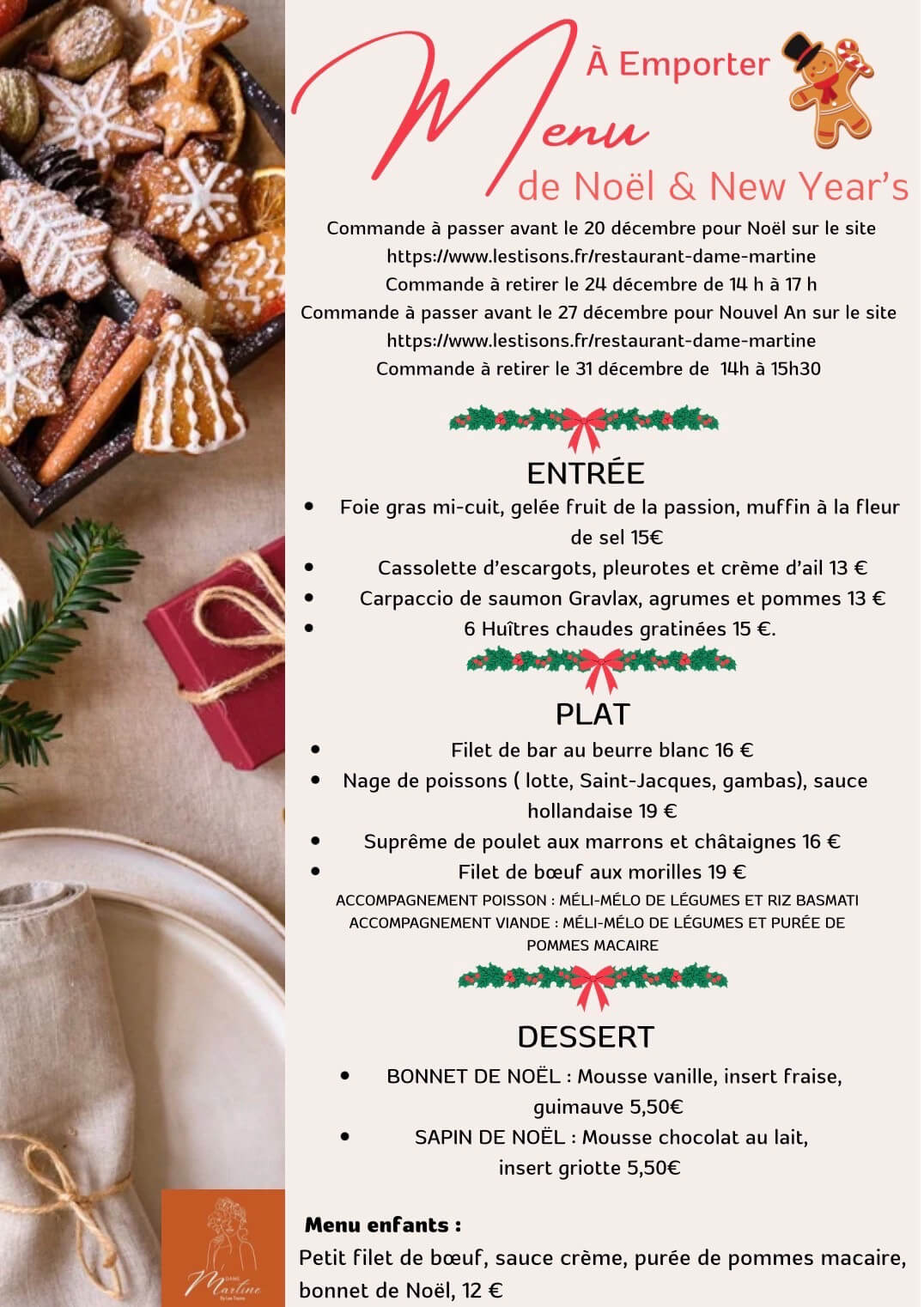 Préparez les fêtes de fin d'année avec les menus à emporter Dame Martine !